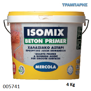 ΠΕΡΙΓΡΑΦΗΤο ISOMIX BETON PRIMER είναι εξαιρετικό χαλαζιακό αστάρι πρόσφυ-σης, ακρυλικών ρητινών και χαλαζιακής άμμου. Εφαρμόζεται σε λείες καιχαμηλής απορροφητικότητας επιφάνειες. Έχει υψηλή αντοχή σε αλκαλικόπεριβάλλον.ΠΛΕΟΝΕΚΤΗΜΑΤΑ• Εξαιρετική πρόσφυση και πολύ υψηλή ικανότητα διείσδυσηςσε χαμηλής απορροφητικότητας επιφάνειες• Ισχυροποίηση υποστρώματος• Γέφυρα πρόσφυσης για εφαρμογή σοβά ή άλλων κονιαμάτων• Στεγνώνει γρήγορα και δεν προκαλεί κιτρινίσματα• Εσωτερική και εξωτερική χρήση• Εύκολη εφαρμογήΕΦΑΡΜΟΓΕΣ• Αστάρωμα λείων επιφανειών - γέφυρα πρόσφυσης - πριν τηνεφαρμογή σοβά ή ακρυλικού τσιμεντοειδούς στόκου σπατουλαρίσματος.• Είναι κατάλληλο για εμφανές μπετόν, τσιμεντοσανίδα,πλάκες πολυστερίνης EPS & XPS, σκυροδέματος κλπ.