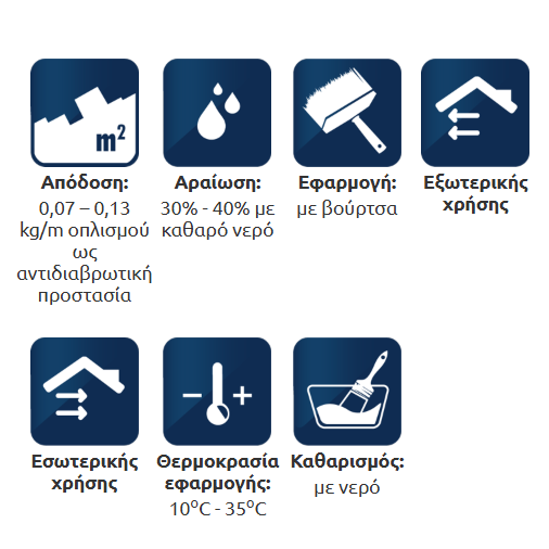 ΑΠΟΔΟΣΗ: 0,07 - 0,13 Κg/m οπλισμού ως αντιδιαβρωτική προστασία 2 Κg/m2ως συνδετική στρώση.