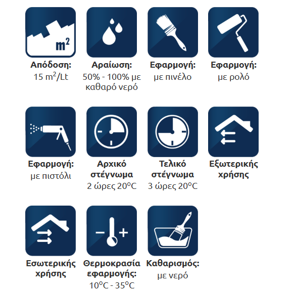• Εφαρμόζεται ως αστάρι οριζόντιων και κάθετων οικοδομικών
