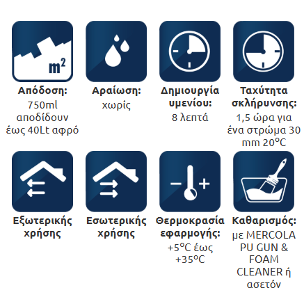 Ο μη πολυμερισμένος αφρός καθαρίζεται με GUN & FOAM CLEANER ή ασετόν. Ο πολυμερισμένος αφρός μπορεί να απομακρυνθεί μόνο με μηχανικά μέσα.