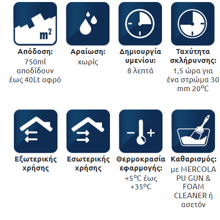 - Μην αγγίζετε την επιφάνεια πριν την ωρίμανση του αφρού πολυουρεθάνης σε χαμηλές θερμοκρασίες. Συνιστάται η εφαρμογή υγρασίας για βελτίωση ταχύτητας ωρίμανσης, συγκόλλησης και δομής κυψελών.
