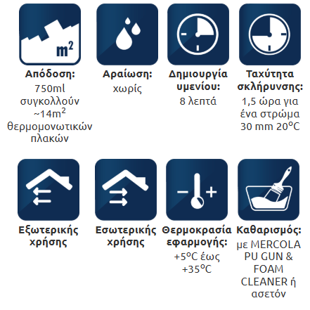 Προσοχή: Οι πλάκες πρέπει να στηρίζονται μηχανικά στο κάτω μέρος του τοίχου πριν την πλήρη σκλήρυνση του αφρού. Η συγκόλληση με αφρό δεν αντικαθιστά τη μηχανική στερέωση. Συνιστάται δοκιμή καταλληλότητας του προϊόντος.