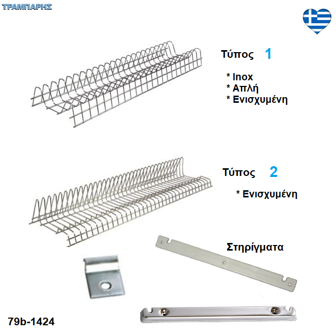 Πιατοθήκες απλές, ενισχυμένες και στηρίγματα καθιστές Inox & χρώμιο , Τύπος 1 Τύπος 2 , Ελληνικής κατασκευής