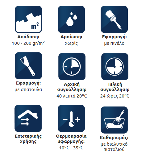 ΑΠΟΔΟΣΗ: 100 - 200 gr/m2 (εφαρμογή ανά επιφάνεια