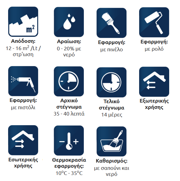ΑΠΟΔΟΣΗ: 12 – 16 m² / Lt ανά στρώση ανάλογα με την υφή, την απορροφητι-