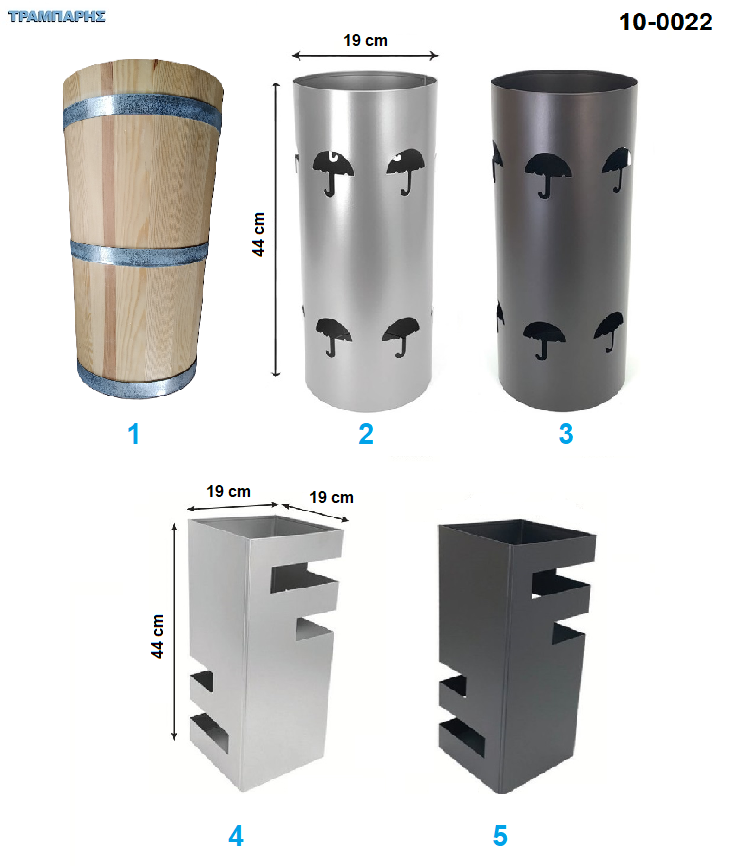 Ομπρελοθήκες μεταλλικές, Y : 44 cm, Φ19 cm Στρογγυλή & 19x19 cm Τετράγωνη