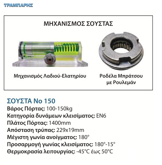 ΣΟΥΣΤΑ ΠΟΡΤΑΣ 150 Kg (δύναμη κλεισίματος ΕΝ6) πλάτος πόρτας: 140 cm Λευκό