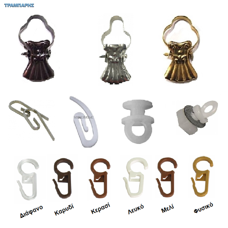 Γάντζάκια κουρτίνας, ράουλα, ραφτό, χουκς, στοπ