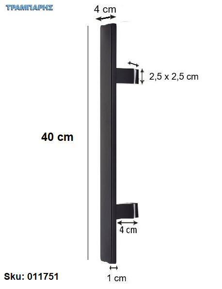 ΛΑΒΗ ΕΞΩΠΟΡΤΑΣ ''ΠΛΑΚΕ'' 40 cm ΜΟΝΟ, Κέντρο: 23 cm, 10x40 mm, πόδι: 4 cm, Μαύρο, Inox 304 SS, ανά τεμάχιο
