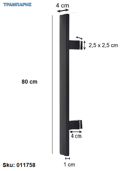 ΛΑΒΗ ΕΞΩΠΟΡΤΑΣ ''ΠΛΑΚΕ'' 80 cm ΜΟΝΟ, Κέντρο: 60 cm, 10x40 mm, πόδι: 4 cm, Μαύρο, Inox 304 SS, ανά τεμάχιο