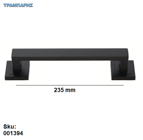 Λαβές εξώπορτας ''καρέ'' μονό, Κέντρο: 23,5 cm, Μαύρο & Νίκελ ματ