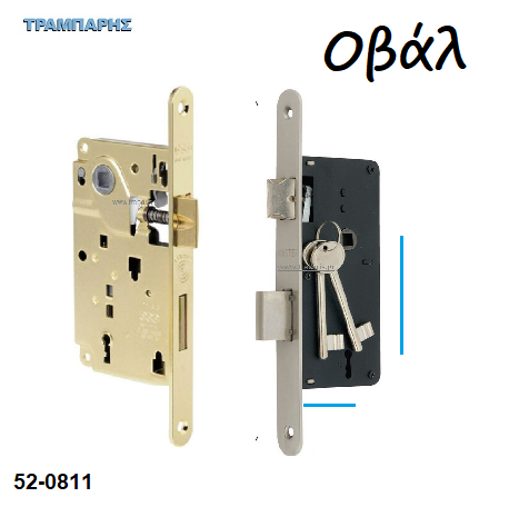 Κλειδαριές μεσόπορτας με οβάλ πλάκα, 40x75 mm, 40x90 mm,45x75 mm, 50x90 mm