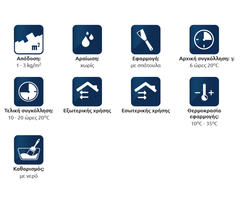 εξαιρετική πρόσφυση των πλακιδίων σε οριζόντιες και κάθετες οικοδομικές