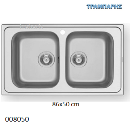 Νεροχύτης με 2 γούρνες, διαστάσεις: 86x50 cm, διαστάσεις γούρνας: 34x40x19 cm, Σατινέ