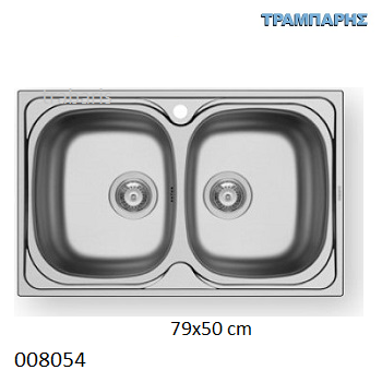 Νεροχύτης με 2 γούρνες, διαστάσεις: 79x50 cm, διαστάσεις γούρνας: 34x40x15 cm, Σατινέ