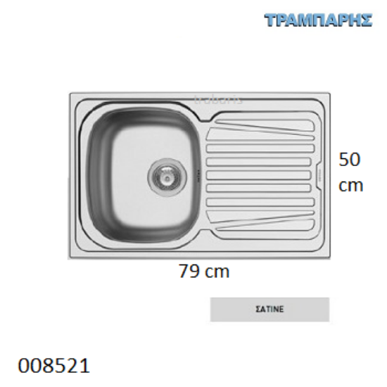 Νεροχύτης με 1 γούρνα, διαστάσεις: 79x50 cm, διαστάσεις γούρνας: 34x40x18 cm, Inox Σατινέ