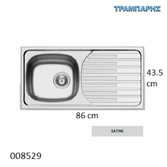 Νεροχύτης με 1 γούρνα, διαστάσεις: 86x43,5 cm, διαστάσεις γούρνας: 36,5x33,5x15 cm, Inox Σατινέ
