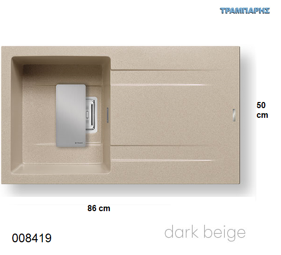 Νεροχύτης με 1 γούρνα, διαστάσεις: 86x50 cm, διαστάσεις γούρνας: 36x42x20 cm, Dark beige