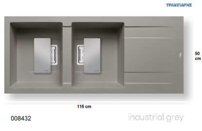 ΝΕΡΟΧΥΤΗΣ pyragranite 116x50 cm 2B Γούρνες 33,5x42x21 cm Kartesio INDUSTRIAL GREY Pyramis