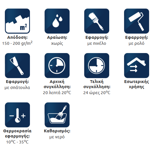 ΑΠΟΔΟΣΗ: 150 - 200 gr/m² ανάλογα με την απορροφητικότητα της επιφάνειας.