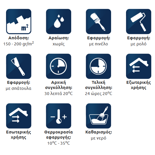 ΑΠΟΔΟΣΗ: 100 - 200 gr/m2 ανάλογα με την απορροφητικότητα της επιφάνειας