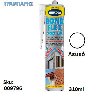 ΠΕΡΙΓΡΑΦΗΗ BONDFLEX 290 LM είναι μαστίχη πολυουρεθάνης (λαστιχόκολλα),πολύ ελαστική, 1 συστατικού, υψηλών προδιαγραφών, κατάλληλη γιασυγκόλληση, στεγάνωση και μόνωση μεταλλικών, οικοδομικών καιγενικών κατασκευών.