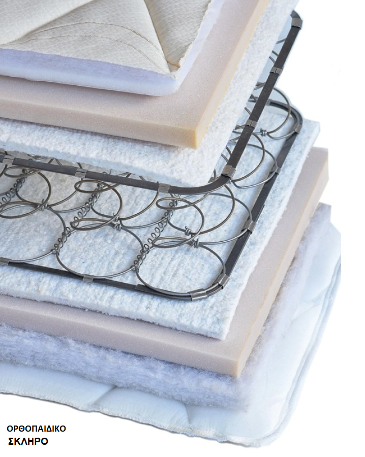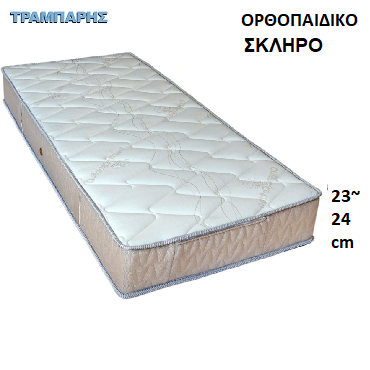 Στρώμα ορθοπαιδικό σκληρό, Πάχος : 23-24 cm , Βαθμός σκληρότητας : Σκληρό. Αποτελείται απο ελατήρια ενισχυμένα τύπου bonell, ψημένη βαμβακερή βάτα, αφρωδες υλικο 2 cm πυκνοτητας Νο 300, πολυεστερική βάτα και ύφασμα οργανικό βαμβάκι και περιμετρική στήριξη. Στρώμα δύο όψεων....Συνιστάται αλλαγή πλευράς ανά 3μηνο.
