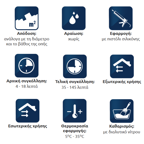 • Δημιουργεί στεγανές πακτώσεις - συγκολλήσεις