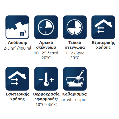 Οι επιφάνειες πρέπει να είναι στεγνές και καθαρές από σκόνες και λίπη. Απομακρύνετε παλιά βερνίκια, χρώματα και σκουριές και περάστε τις μεταλλικές επιφάνειες με γυαλόχαρτο αν χρειάζεται.