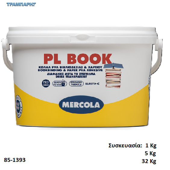 - Για το κολλάρισμα χαρτιού, υφασμάτων κλπ, η PL BOOK πρέπει να αραιωθεί από 60-80% με νερό