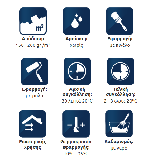 - Ιδανική θερμοκρασία εφαρμογής:18oC - 20oC.