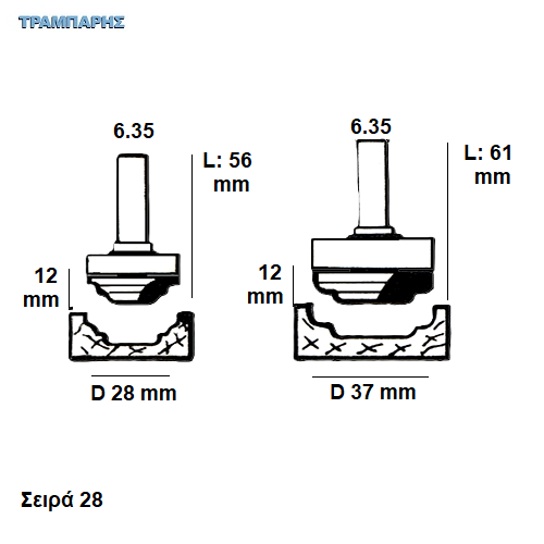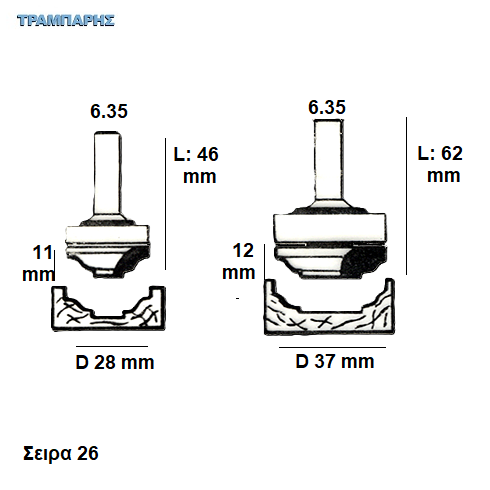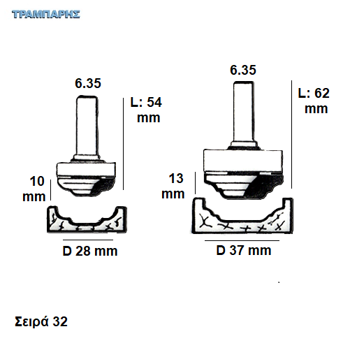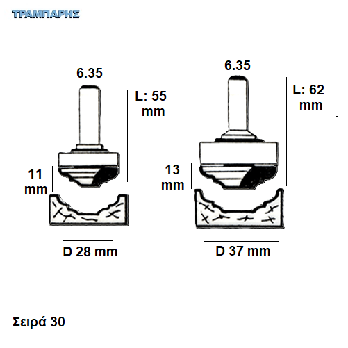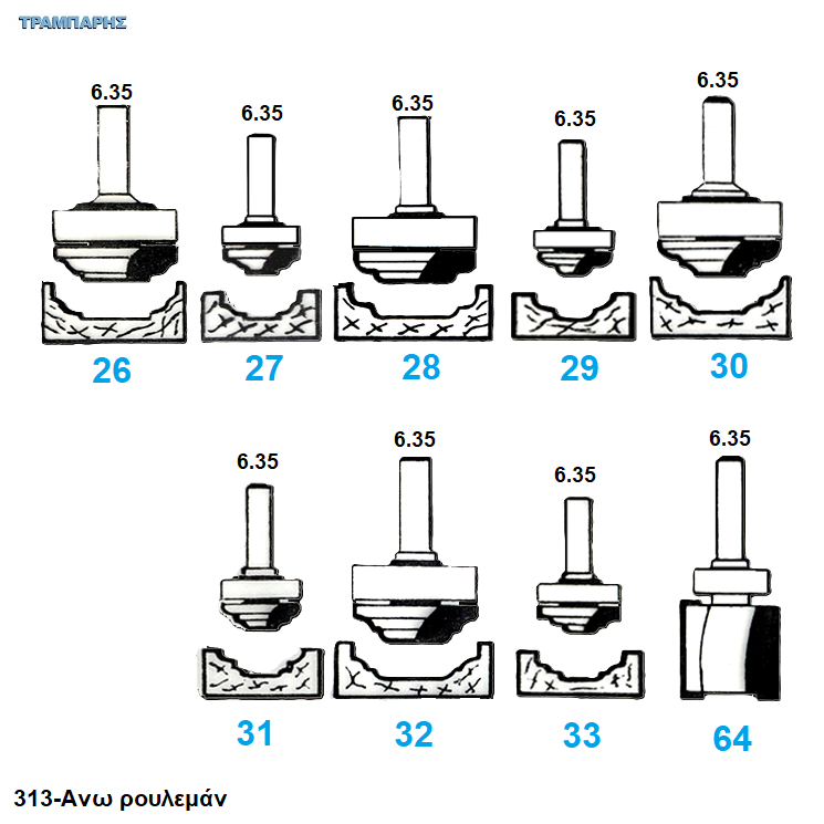 Κοπτικά εργαλεία για ρούτερ με άνω μέρος ρουλεμάν