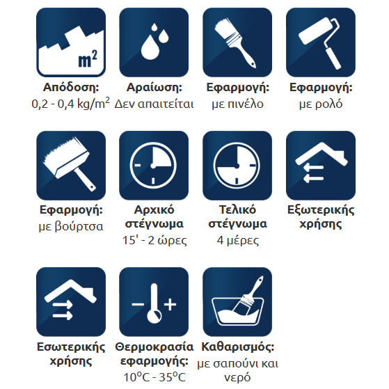 Οι επιφάνειες εφαρμογής πρέπει να είναι στεγνές και καθαρές από σκόνες, λάδια και σαθρά υπολείμματα.