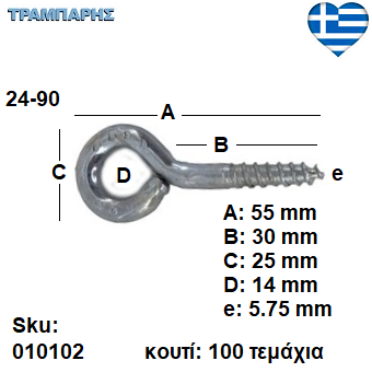 ΒΙΔΟΘΗΛΙΑ 24-90 κουτί 100 τεμαχίων με ουπατ, πάχος: 5,75 mm, Γαλβανιζέ
