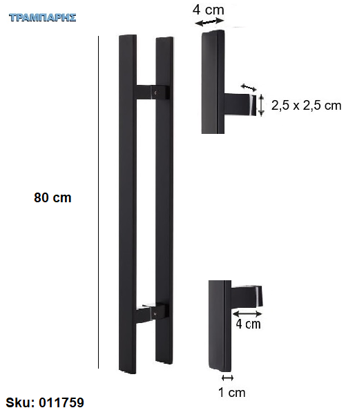 ΛΑΒΗ ΕΞΩΠΟΡΤΑΣ ''ΠΛΑΚΕ'' 80 cm ΔΙΠΛΟ, Κέντρο: 60 cm, 10x40 mm, πόδι: 4 cm, Μαύρο, Inox 304 SS, ανά ζεύγος