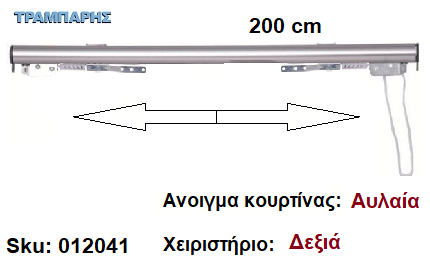ΣΙΔΗΡΟΔΡΟΜΟΣ SLIM 200 cm (κορδόνι) Νίκελ ματ Ανοιγμα: Αυλαία - Χειριστήριο : Δεξιά (χωρίς βαρύδι) ΟΒΑΛ 21x23 mm