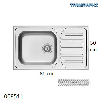 Νεροχύτης με 1 γούρνα, διαστάσεις: 86x50 cm, διαστάσεις γούρνας: 45x40x21 cm, Inox Σαγρέ