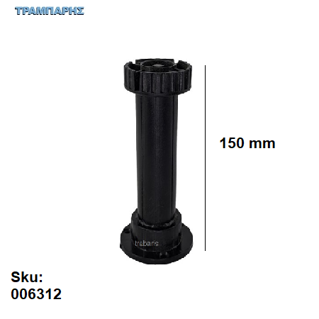 ΠΟΔΙ Y: 150 mm Μαύρο ΒΤ ψιλό σπείρωμα πλαστικό ντουλαπιών