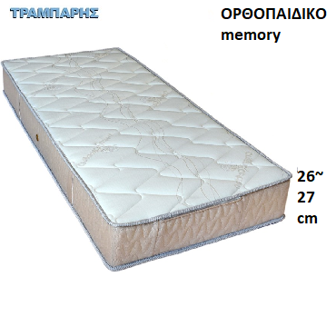 Στρώμα ορθοπαιδικό menory, Πάχος : 26-27 cm , Βαθμός σκληρότητας : Μέτριο προς Σκληρό. Αποτελείται απο ελατήρια ενισχυμένα τύπου bonell, ψημένη βαμβακερή βάτα, αφρωδες υλικο 2 cm πυκνοτητας Νο 300, αφρωδες υλικό (memory Foam 2 cm), πολυεστερική βάτα και ύφασμα οργανικό βαμβάκι και περιμετρηκή στήριξη. Στρώμα δύο όψεων....Συνιστάται αλλαγή πλευράς ανά 3μηνο.