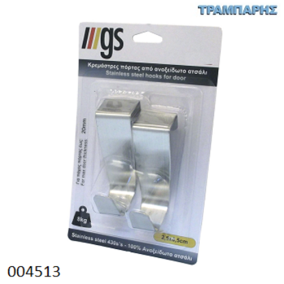 ΚΡΕΜΑΣΤΡΑ 1 ΘΕΣΗ ΠΟΡΤΑΣ set 2 τεμαχίων Inox